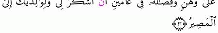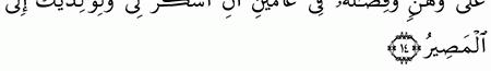 الآية رقم {14} من سورة ( لقمان)