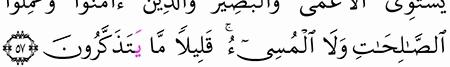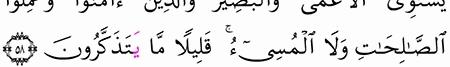 الاستماع بعدة قراءات للآية رقم:(58) من سورة غافر حسب رواية حفص